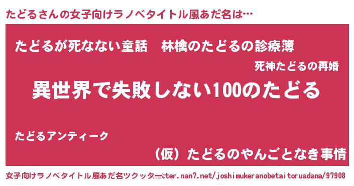 | 胡散臭い通販商品みたいなあだ名 | 『絶対に幸福をもたらす健康食品…その名も「たどる」』 |