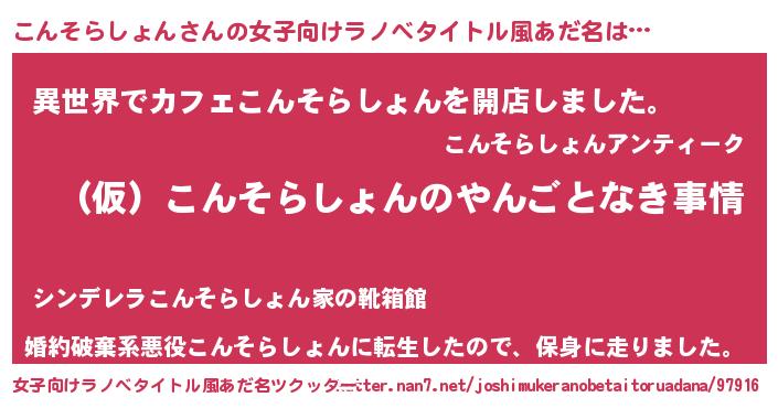 | 胡散臭い通販商品みたいなあだ名 | 『必ず成功するブレスレット…その名も「こんそらしょん」』 |