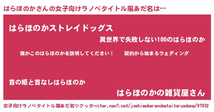 | 男性向けラノベタイトル風あだ名 | 『ハラホノカアートオンライン』 |