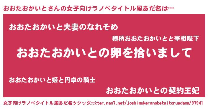 | 男性向けラノベタイトル風あだ名 | 『おおたおかいとの嫁は女の子じゃないと思った?』 |