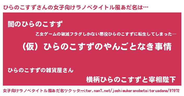 | 胡散臭い通販商品みたいなあだ名 | 『必ず成功するブレスレット…その名も「ひらのこすず」』 |