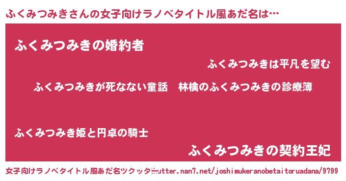 | 男性向けラノベタイトル風あだ名 | 『魔弾の王とふくみつみき』 |