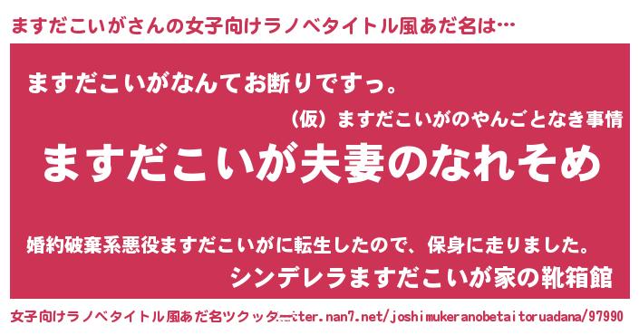| 男性向けラノベタイトル風あだ名 | 『おまえをオタクにしてやるから、俺をますだこいがにしてくれ! 』 |