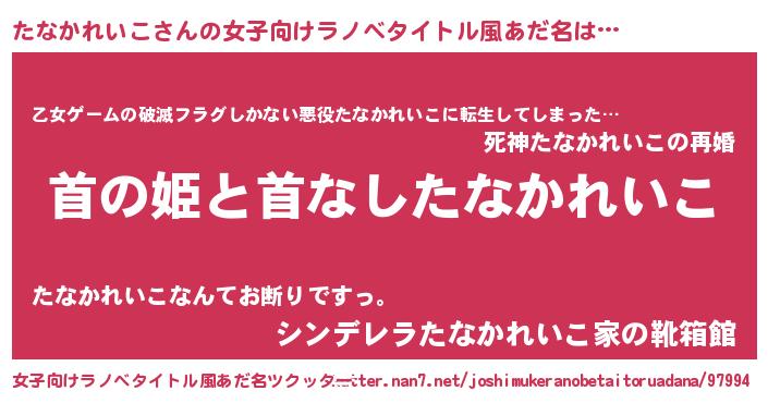 | 男性向けラノベタイトル風あだ名 | 『はたらくたなかれいこさま!』 |