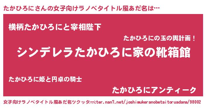 | 男性向けラノベタイトル風あだ名 | 『冴えないたかひろにの育てかた』 |