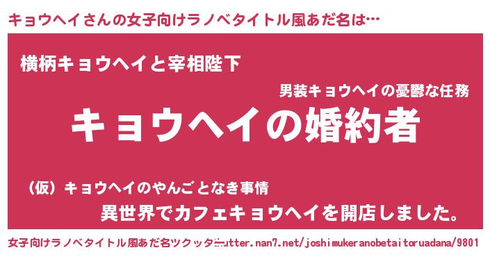 | ファンタジー風あだ名 | 『エターナルキョウヘイー』『キョフェル』 |