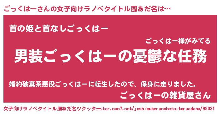 | 男性向けラノベタイトル風あだ名 | 『うちのごっくはーが世界を掌握している!』 |