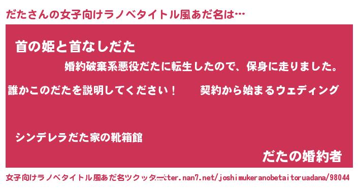 | 胡散臭い通販商品みたいなあだ名 | 『億万長者になれる水晶球…その名も「だた」』 |