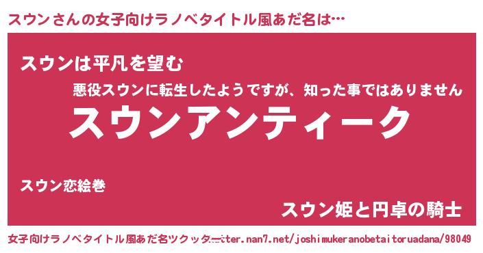 | ヒーロー風カッコイイあだ名 | 『ウルトラ戦士スウン』『幻影騎士スウ』 |