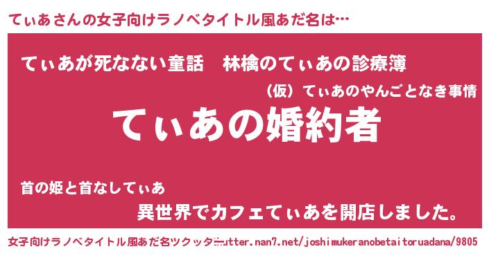 | 意味不明あだ名 | 『てぃあフォーエバー』『永久保存てぃあ』 |