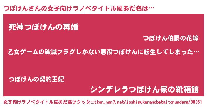 | 男性向けラノベタイトル風あだ名 | 『魔弾の王とつぼけん』『緋弾のツボケン』 |