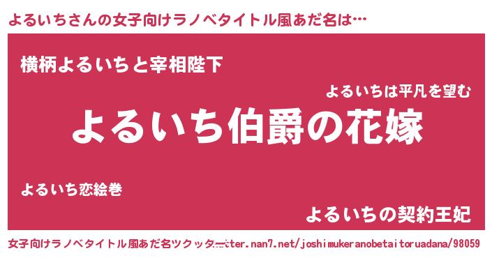 | 男性向けラノベタイトル風あだ名 | 『やはりよるいちの青春ラブコメはまちがっている 』 |