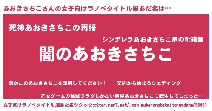 | ヒーロー風カッコイイあだ名 | 『サイバー戦士アオキサチコ』 |