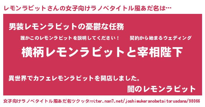 | 男性向けラノベタイトル風あだ名 | 『レモンラビットに滅ぼされるだけの簡単なお仕事です』 |