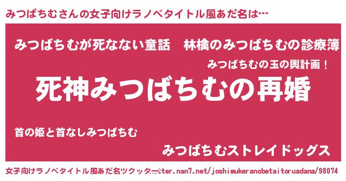 | ヘコむあだ名 | 『みつっふぃ~』『みつばちむ(苦笑)』 |