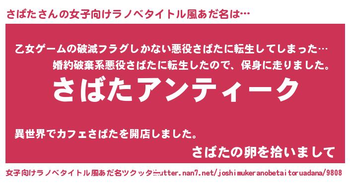 | 男性向けラノベタイトル風あだ名 | 『魔法科高校のさばた』 |