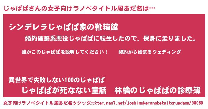 | 胡散臭い通販商品みたいなあだ名 | 『億万長者になれる霊験あらたかなお札…その名も「じゃぱぱ」』 |