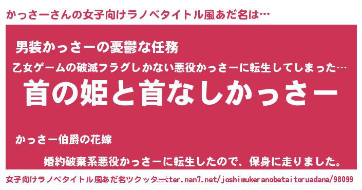 | ヒーロー風カッコイイあだ名 | 『仮面カッダー』『ウルトラかっさーマン』 |