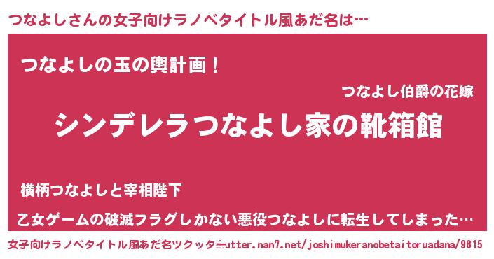 | 胡散臭い通販商品みたいなあだ名 | 『世界中を虜にした100年もののヴィンテージワイン…その名も「つなよし」』 |