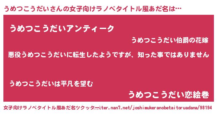 | 男性向けラノベタイトル風あだ名 | 『この素晴らしい世界にうめつこうだいを!』 |