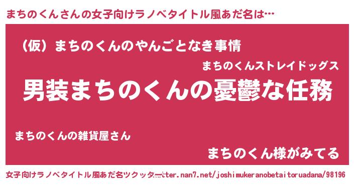 | 男性向けラノベタイトル風あだ名 | 『うちのまちのくんが世界を掌握している!』 |