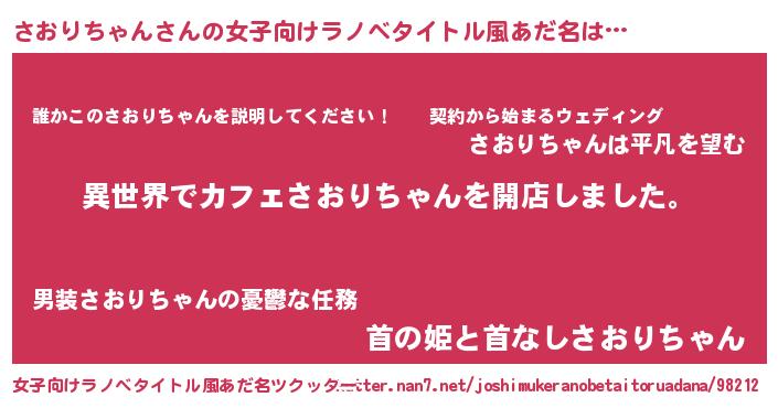 | 意味不明あだ名 | 『永久保存さおりちゃん』 |