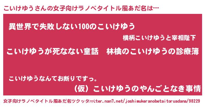 | 意味不明あだ名 | 『住所不定無職こいけゆう(50歳)』 |