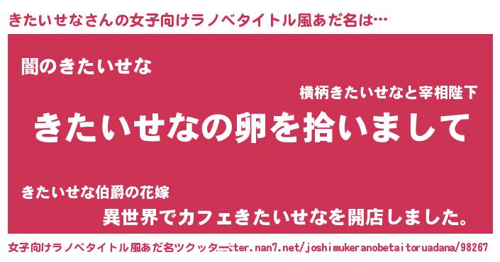 | 意味不明あだ名 | 『とにかく怪しいきたいせな』 |
