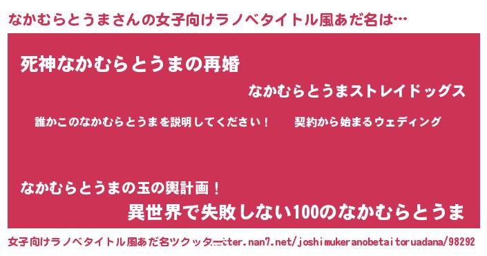 | 男性向けラノベタイトル風あだ名 | 『ナカムラトウマアートオンライン』 |