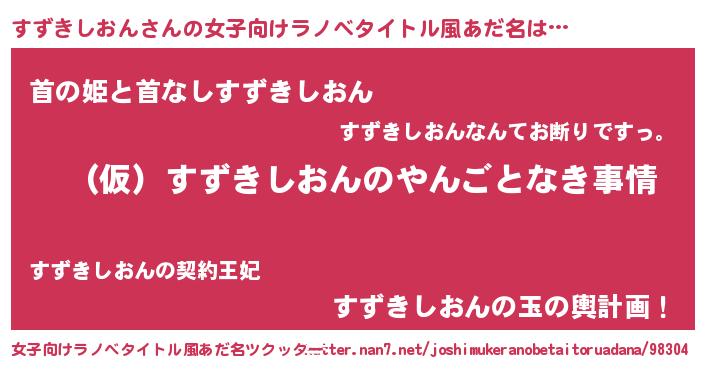 | 胡散臭い通販商品みたいなあだ名 | 『必ず成功する霊験あらたかなお札…その名も「すずきしおん」』 |