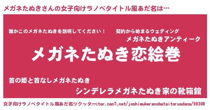| 男性向けラノベタイトル風あだ名 | 『ノーゲーム・ノーメガネタヌキ』 |