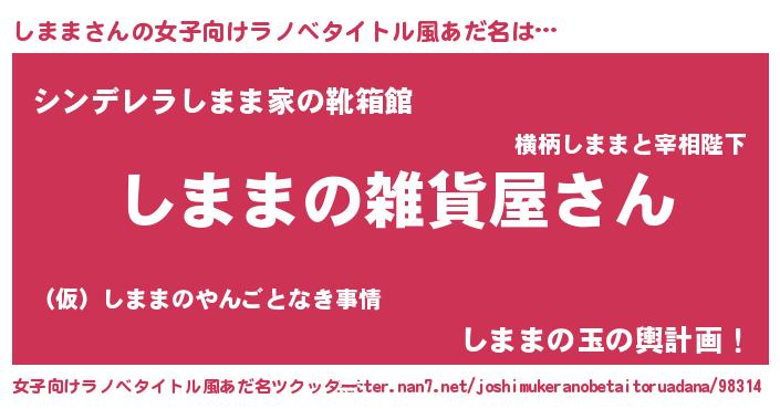 | 男性向けラノベタイトル風あだ名 | 『やはりしままの青春ラブコメはまちがっている 』 |