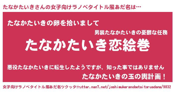 | 男性向けラノベタイトル風あだ名 | 『ノーゲーム・ノータナカタイキ』 |
