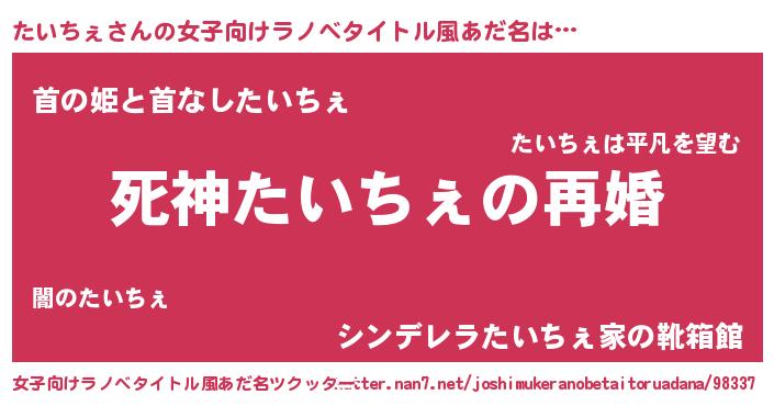| 男性向けラノベタイトル風あだ名 | 『ノーゲーム・ノータイチェ』 |