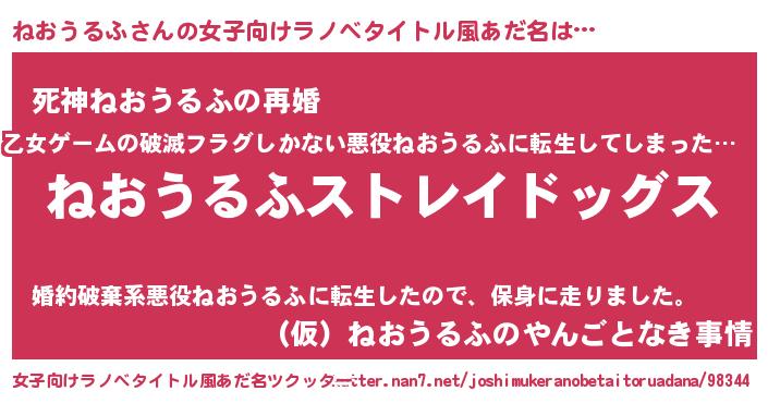 | 胡散臭い通販商品みたいなあだ名 | 『芸能人もオススメする冬虫夏草…その名も「ねおうるふ」』 |