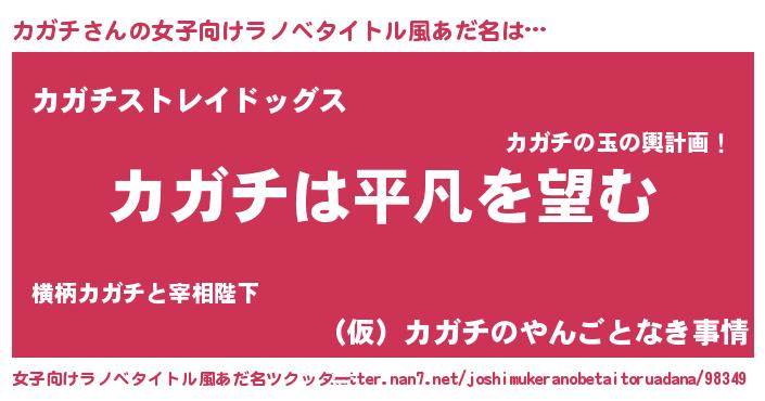 | 意味不明あだ名 | 『とにかく怪しいカガチ』『自称カガチ』 |