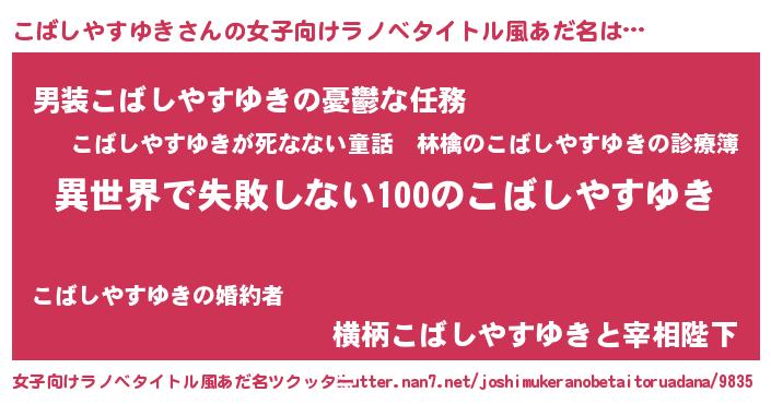| 意味不明あだ名 | 『永久保存こばしやすゆき』 |