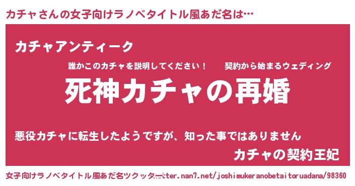 | 男性向けラノベタイトル風あだ名 | 『ノーゲーム・ノーカチャ』 |