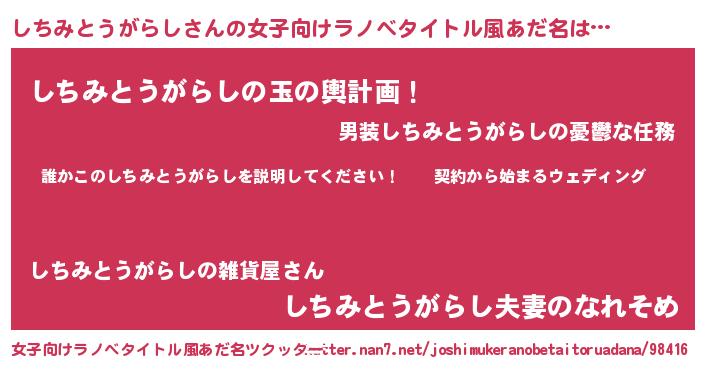 | 男性向けラノベタイトル風あだ名 | 『シチミトウガラシアートオンライン』 |