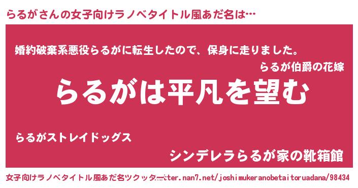 | ヘコむあだ名 | 『らるを』『牛乳』『らるが(苦笑)』 |