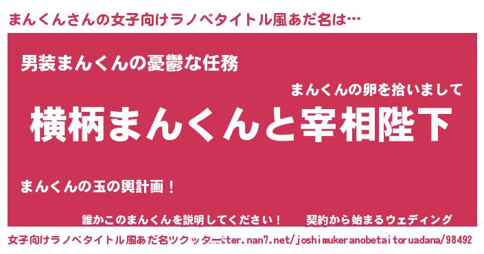 | 男性向けラノベタイトル風あだ名 | 『まんくんに滅ぼされるだけの簡単なお仕事です』 |