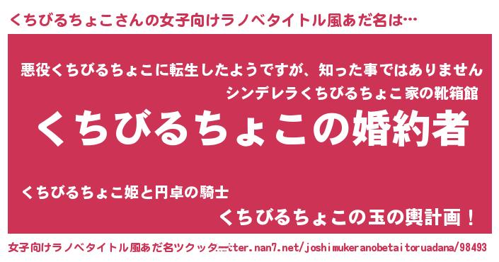 | 男性向けラノベタイトル風あだ名 | 『うちの娘の為ならば、俺はもしかしたらくちびるちょこも倒せるかもしれない。』 |