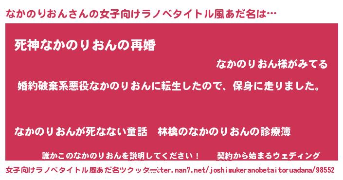 | 男性向けラノベタイトル風あだ名 | 『ナカノリオンスレイヤー』 |