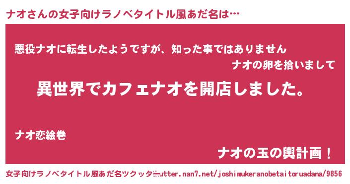 | 男性向けラノベタイトル風あだ名 | 『誰もが恐れるあのナオが、ぼくの専属メイドになるようです。』 |