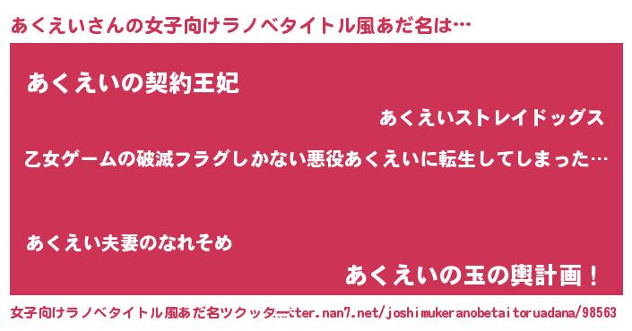 | 男性向けラノベタイトル風あだ名 | 『魔弾の王とあくえい』 |