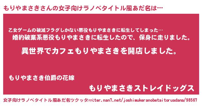 | ヘコむあだ名 | 『もりやまさき(小並感)』『レバニラ』 |