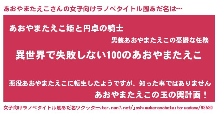 | 男性向けラノベタイトル風あだ名 | 『あおやまたえこという概念が存在しない退屈な世界 』 |