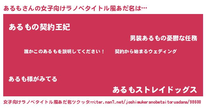 | 胡散臭い通販商品みたいなあだ名 | 『億万長者になれるブレスレット…その名も「あるも」』 |