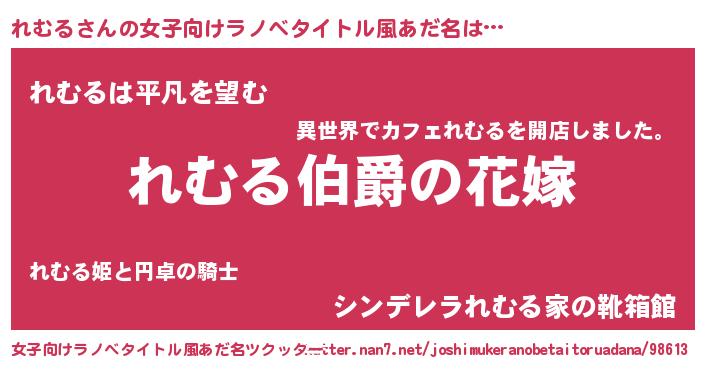 | 男性向けラノベタイトル風あだ名 | 『やはりれむるの青春ラブコメはまちがっている 』 |