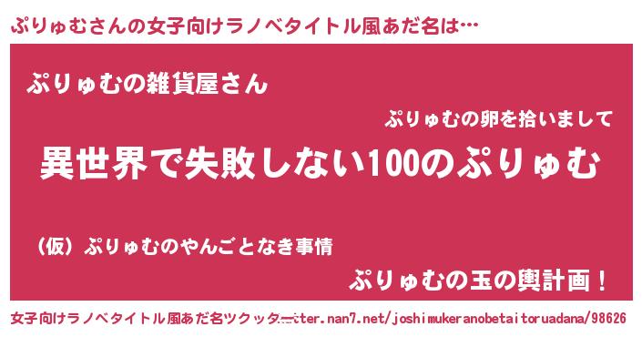 | 男性向けラノベタイトル風あだ名 | 『ぷりゅむという概念が存在しない退屈な世界 』 |